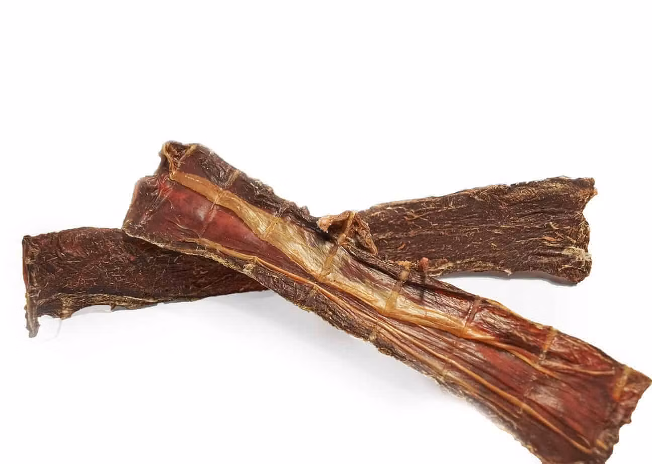 Emmzo Svensk Oxmatstrupe 1 kg är ett populärt naturligt varsamt torkat hundtugg. Det är ett segt och smakrikt alternativ som uppskattas av små och mellanstora hundar. Detta tuggben är benfritt och platt. Tillverkningen sker i Sverige och produkten är registrerad hos Jordbruksverket.