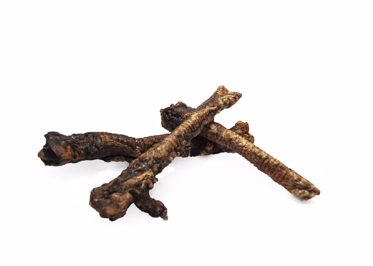 Emmzo Svensk Lammstrupe är ett naturligt, svenskt hundtugg gjort av 100 % torkad lammstrupe. Det är särskilt populärt för hundar med allergier eller känsliga magar då det består av ett enda protein (singelprotein). Produkten består av varsamt lufttorkade strupar som är naturligt rika på glukosamin och kollagen, vilket främjar god ledhälsa och bindväv.